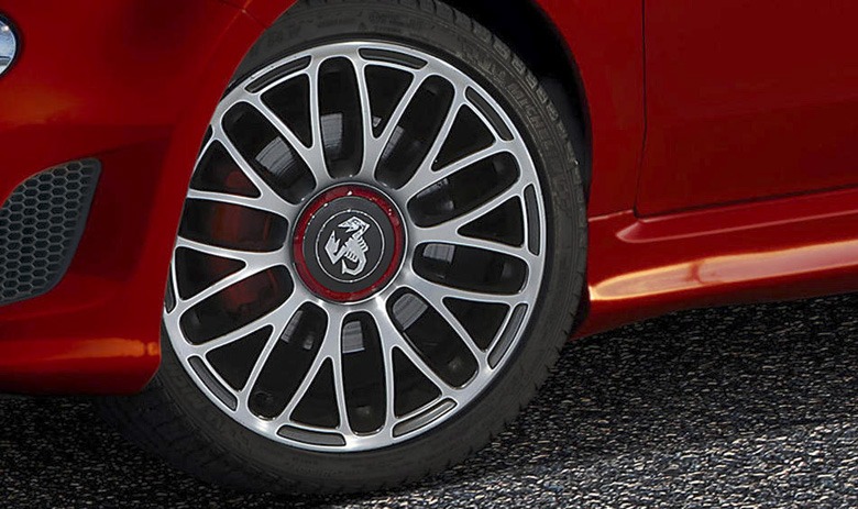 В 595 Turismo воплощена традиционная идея Abarth: индивидуализация и внимание к деталям. Передние тормозные диски перфорированные и вентилируемые, задние – перфорированные. Еще одной черточкой в пользу уникальности стала опция, предусматривающая красный или желтый цвет суппортов. Эксклюзивные легкосплавные 17-дюймовые колеса Abarth украшены эмблемой скорпиона.